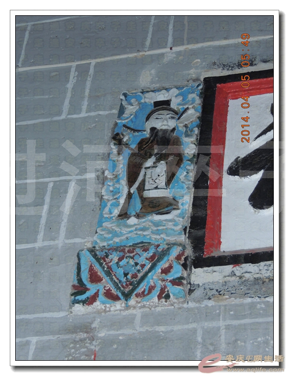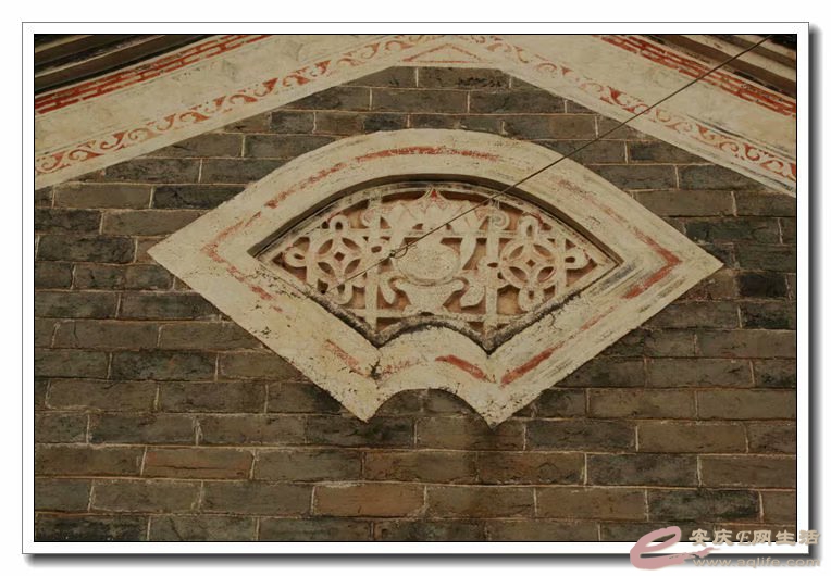 该建筑老墙灰瓦、大树繁盛,高高悬挂在门匾上的砖雕“喜”和“寿”刻字就映入眼前,字大约六十公分,十分引人注目。文革时期被毁一部分,显露着百年老宅的沧桑之感。